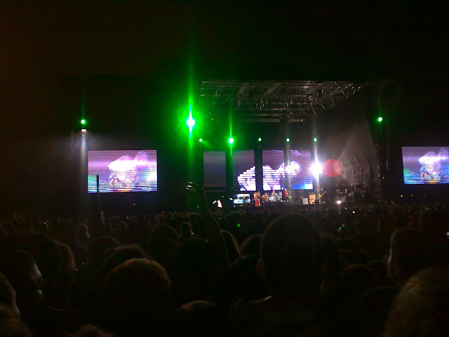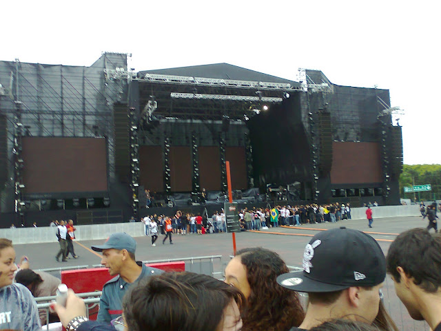 Parada em Curitiba pra pegar mais uma renca e partir de ônibus. DVD do Live at Slane Castle passando, e eu só escutando o som e imaginando como seria dali menos de 24 horas. Chegando lá, pego a fila e fico desde as 8:30, revezando com alguns, claro. O ponto triste - por parte da organização - foi a abertura dos portões, que aconteceu 16:30 e não 18:00. Isso porque depois que entramos, ficamos 4 horas em pé, se empurrando, até que a banda de abertura (a britânica Foals, boa por sinal) começasse seus trabalhos. Tocaram umas 10 músicas, mas pareciam umas 30, o tempo não passava. E eis que perto das 22:00, uns vinte atrasados. Eles aparecem.